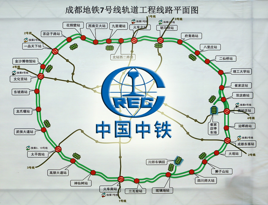 成都地鐵7號線全長38.56公里,全為地下線,共設(shè)車站31座,標(biāo)準(zhǔn)站13座,換乘站18座,車輛段和停車場各1個(gè),線路位于城區(qū)二環(huán)、三環(huán)之間居住最密集地帶,串聯(lián)了火車北站、火車南站、火車東站、城北客運(yùn)中心站四大重要交通樞紐,與城市快速軌道交通和市域軌道交通放射線形成換乘關(guān)系。