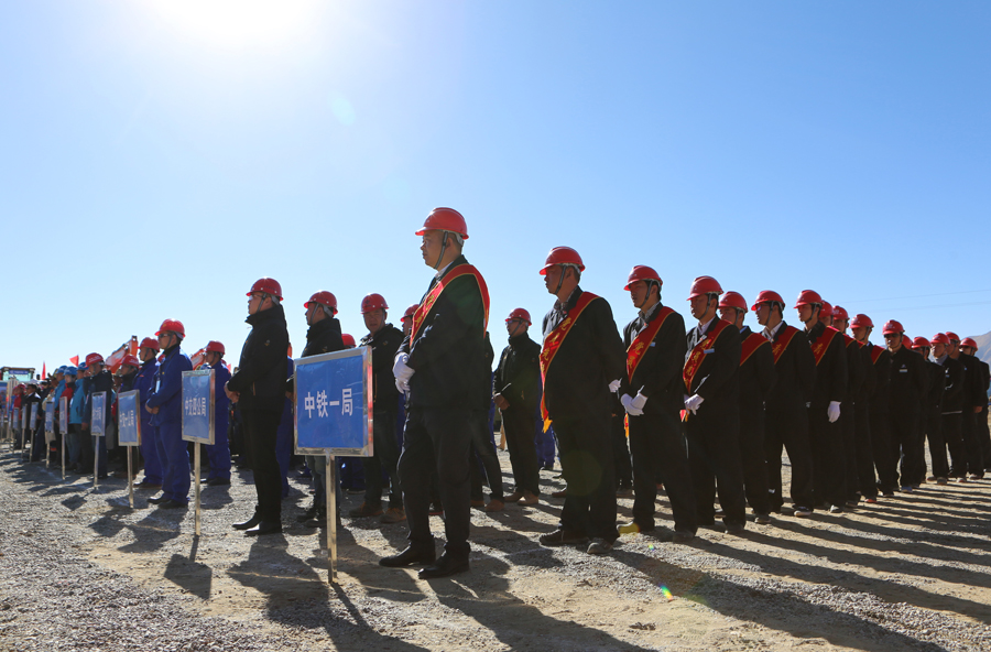 西藏自治區(qū)日喀則市委書(shū)記張延清,市委副書(shū)記、市長(zhǎng)劉虎山,區(qū)政協(xié)民族宗教委員會(huì)副主任、市政協(xié)副主席、總工會(huì)主席堯西·索朗扎巴,市委常委、秘書(shū)長(zhǎng)雷進(jìn)昌;市人大常委會(huì)副主任夏加,副市長(zhǎng)桑珠次仁;中鐵城投集團(tuán)黨委副書(shū)記、紀(jì)委書(shū)記吳國(guó)強(qiáng),中鐵一局副總經(jīng)理湯勇等出席奠基儀式。日喀則市直管部門(mén)領(lǐng)導(dǎo),監(jiān)理單位,中鐵城投西藏分公司、中鐵一局三公司的建設(shè)者參加了開(kāi)工儀式。
