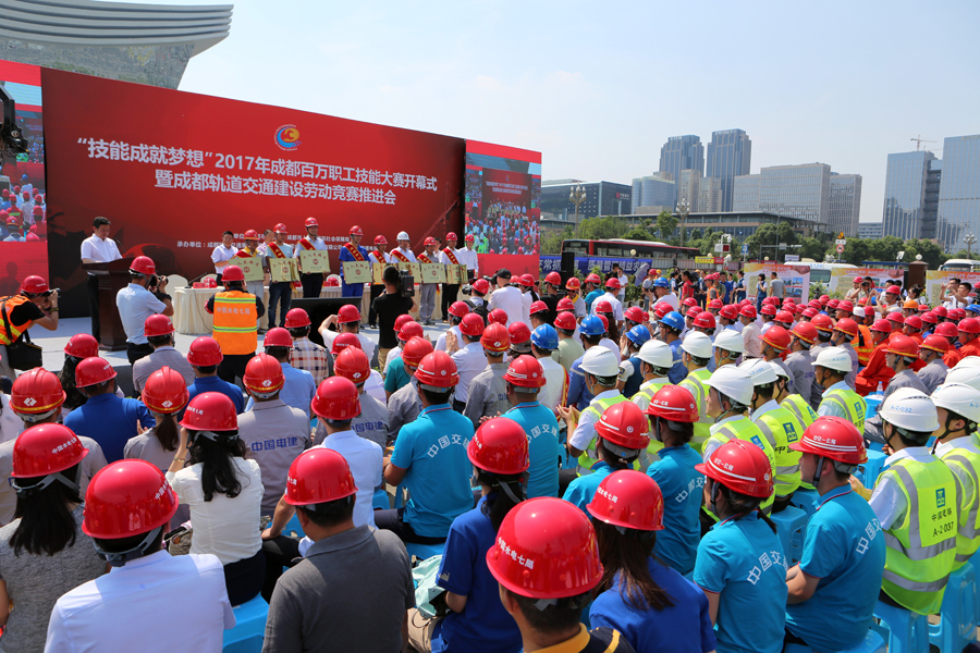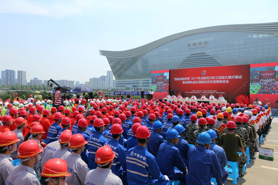 5月27日,成都市總工會(huì)舉辦“技能成就夢(mèng)想”2017年成都百萬(wàn)職工技能大賽開(kāi)幕式暨成都軌道交通建設(shè)勞動(dòng)競(jìng)賽推進(jìn)會(huì),動(dòng)員地鐵建設(shè)者為努力打造西部交通樞紐,奮力實(shí)現(xiàn)“650+”任務(wù)目標(biāo),為建設(shè)全面體現(xiàn)新發(fā)展理念的國(guó)家中心城市再立新功。