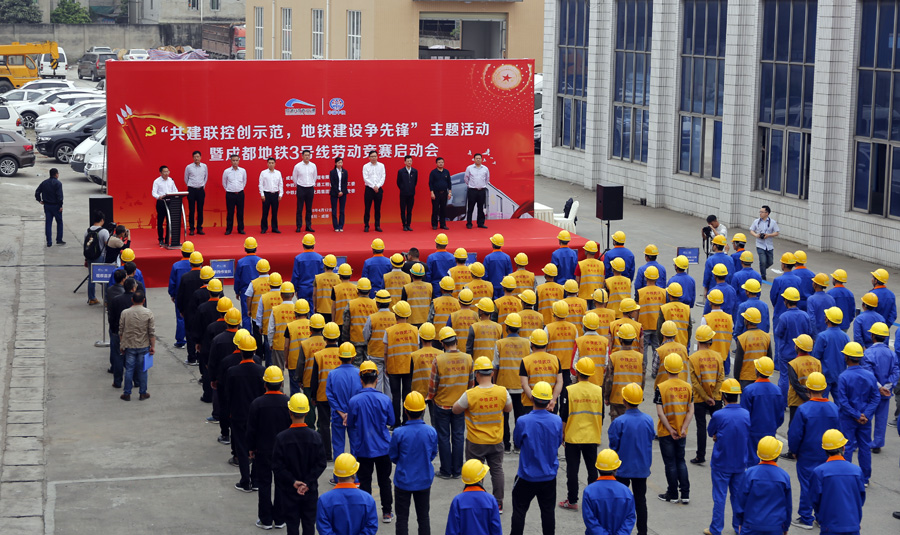 在成都地鐵3號線二三期工程開通進入倒計時之際,4月12日,成都軌道集團建設公司、中鐵成都軌道交通工程指揮部黨工委、中鐵武漢電氣化局集團黨委聯合主辦的“共建聯控創示范、地鐵建設爭先鋒”主題活動暨成都地鐵3號線勞動競賽啟動儀式在成都地鐵3號線二三期3標項目部舉行。