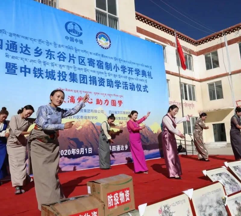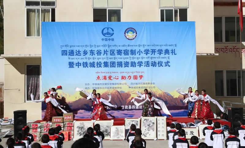 9月1日上午,中鐵城投集團和四川省災后重建基金會共同舉辦的“點滴愛心、助力圓夢”捐資助學公益活動在甘孜縣四通達鄉東谷片區寄宿制學校舉行,這天也是學校新學期開學第一天。